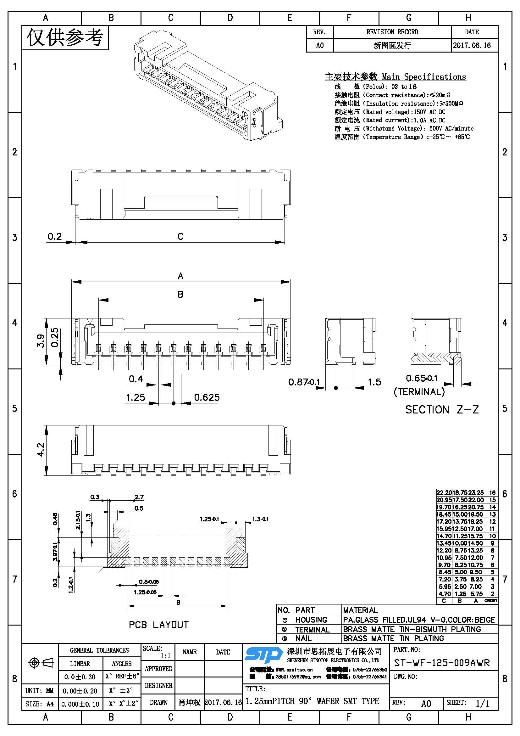Spec:1.25mm PITCH 90° WAFER SMT TYPE