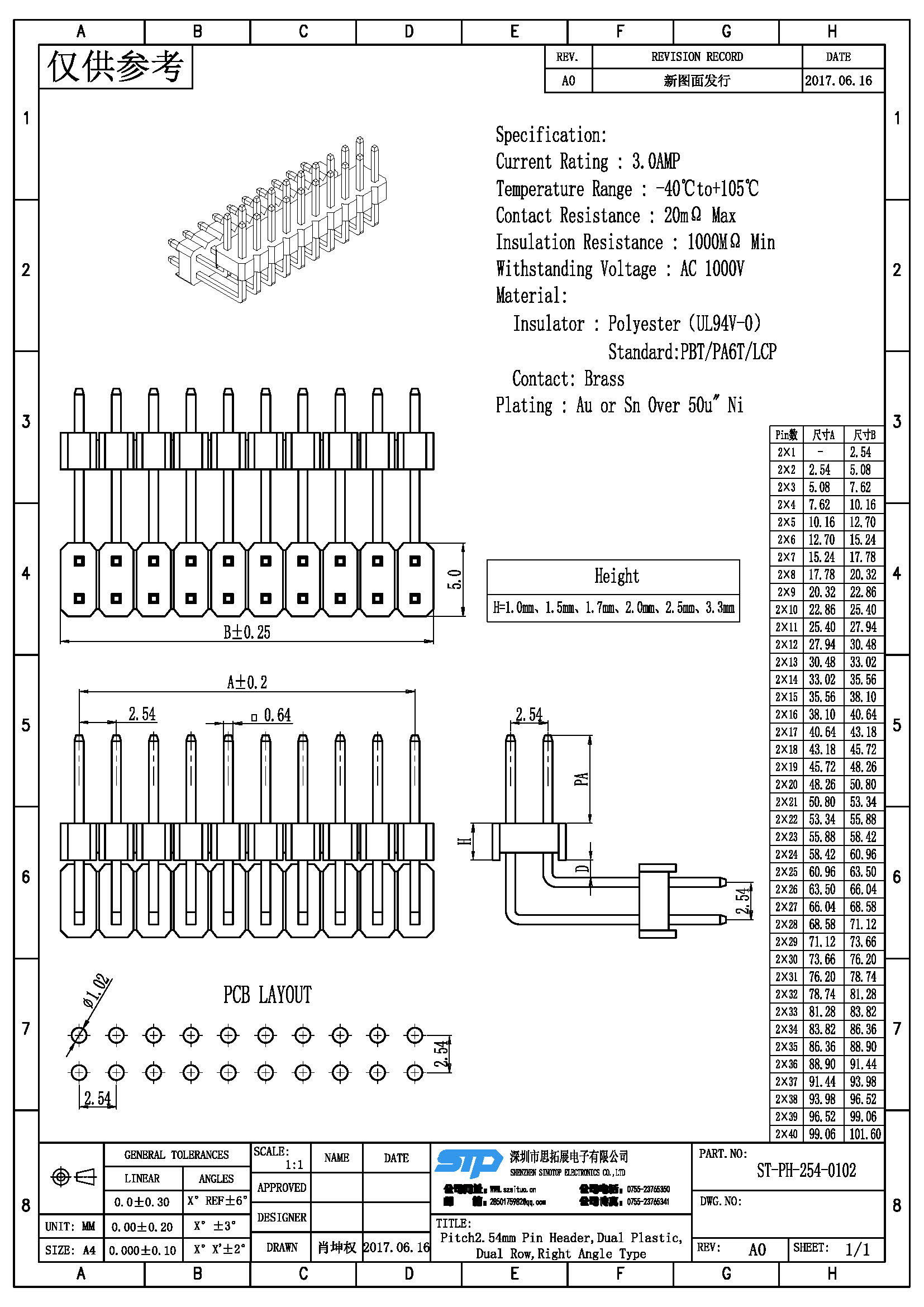 塑胶高度:1.0/1.5/1.7/2.0/2.5/3.3MM