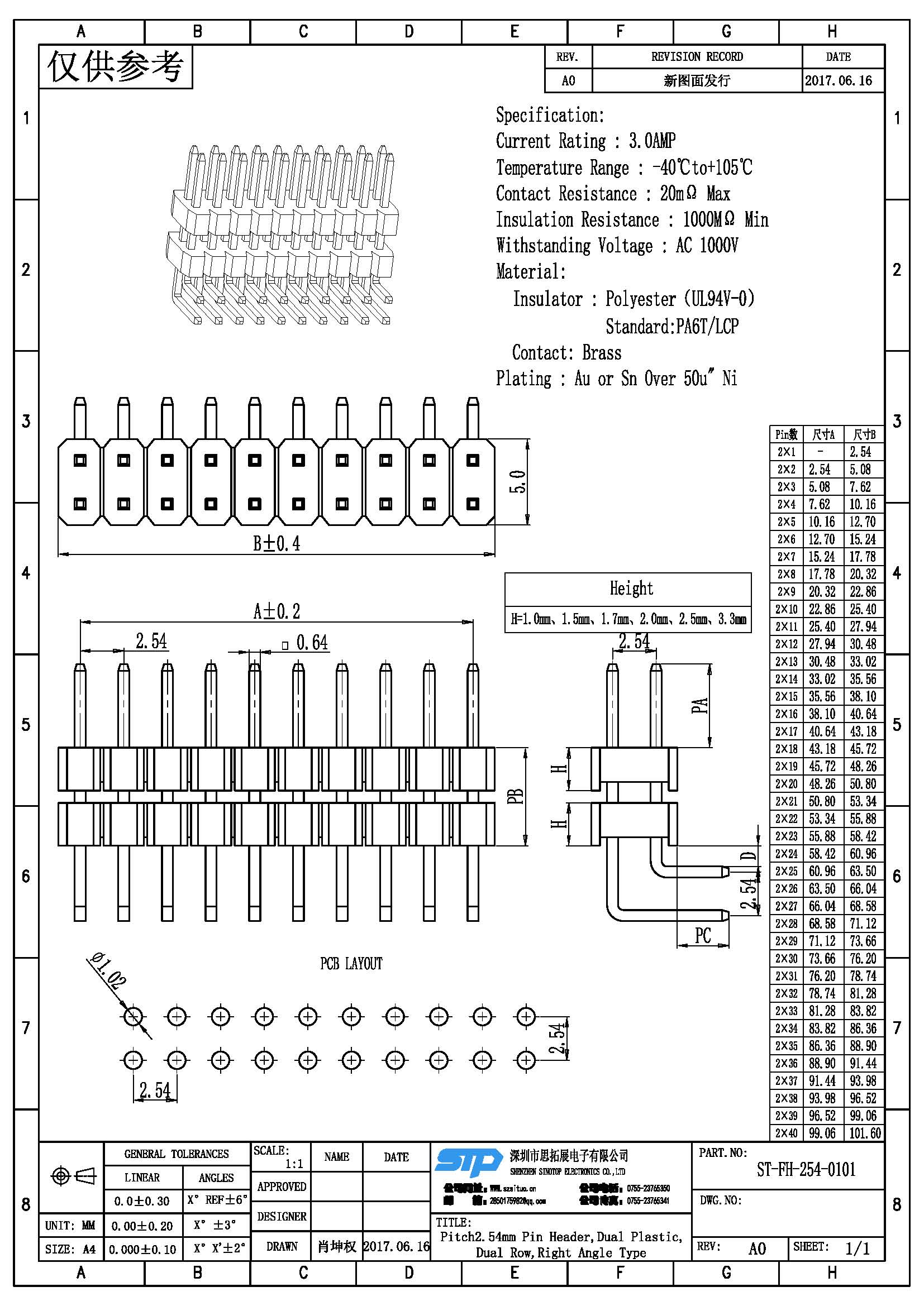 塑胶高度:1.0/1.5/1.7/2.0/2.5/3.3MM