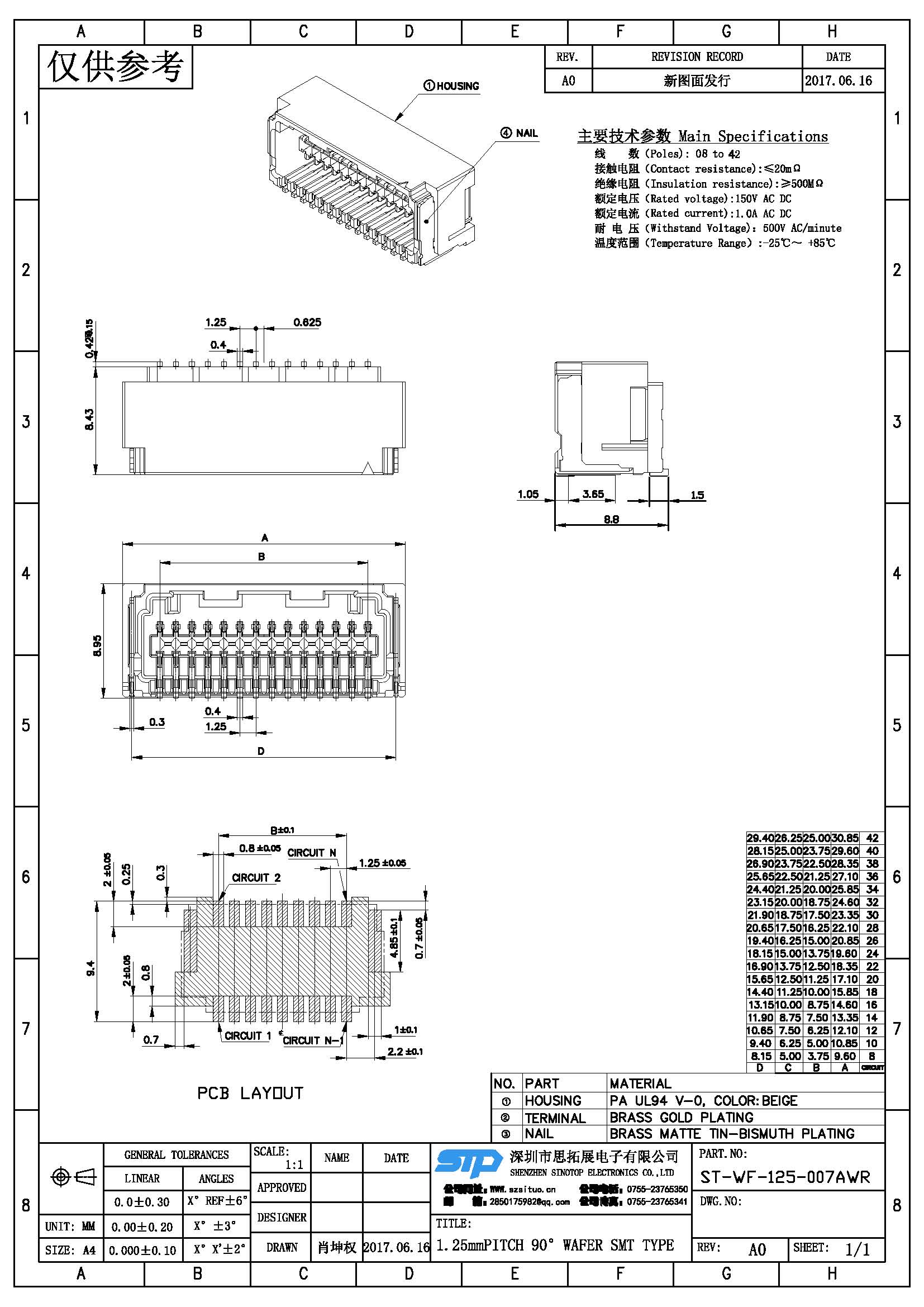 Spec:1.25mm PITCH 90° WAFER SMT TYPE