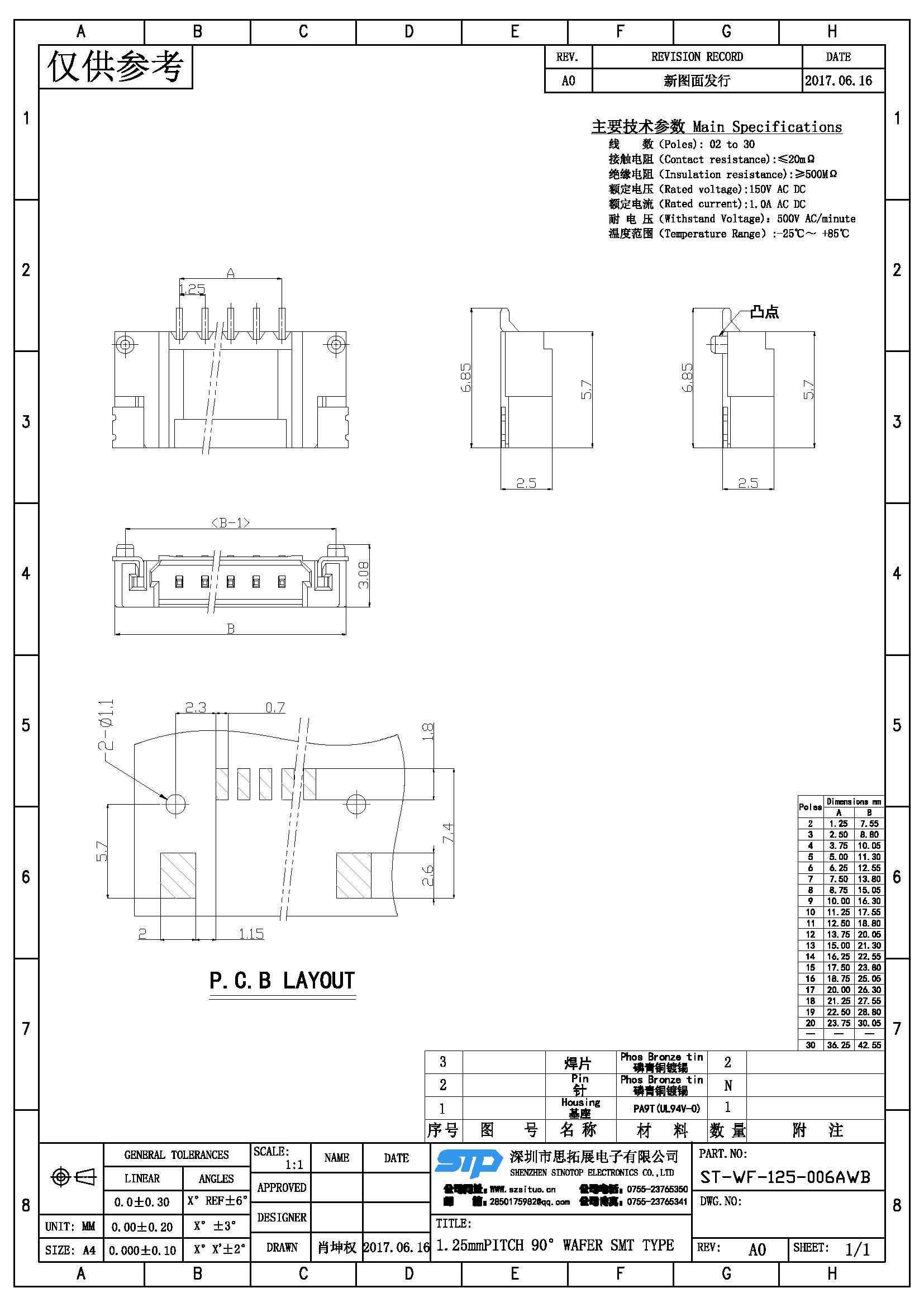 Spec:1.25mm PITCH 90° WAFER SMT TYPE