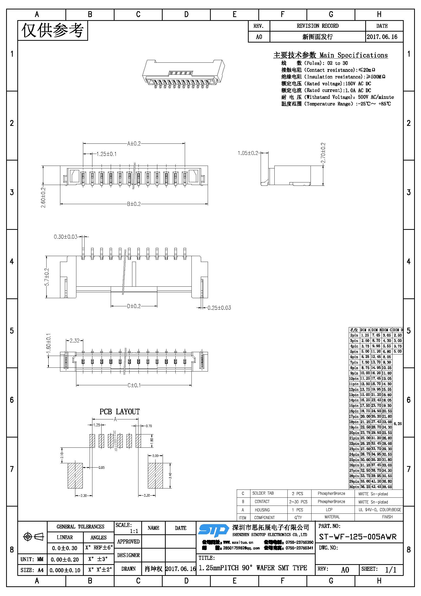 Spec:1.25mm PITCH 90° WAFER SMT TYPE
