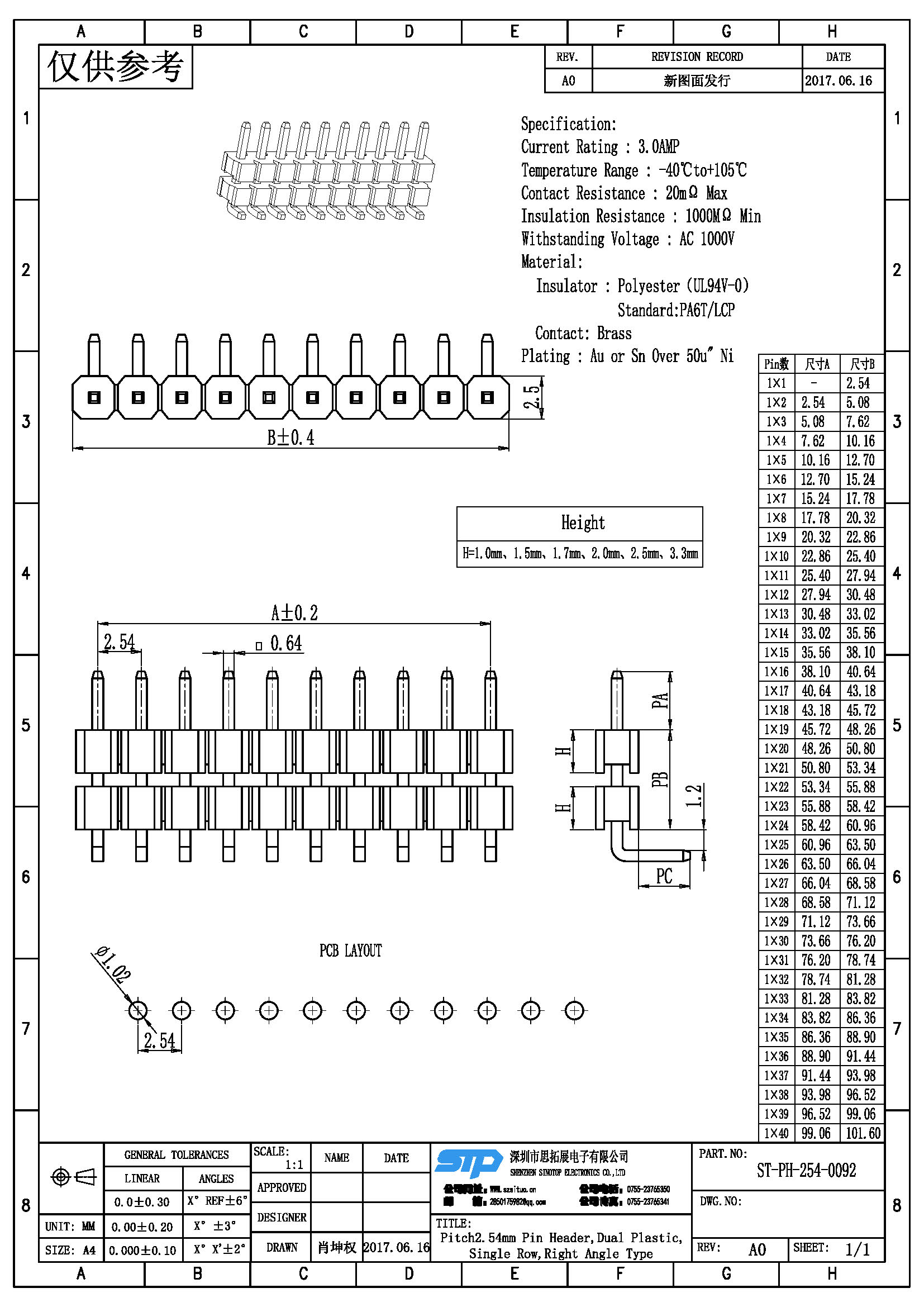 - 产品描述:PIN:1*1P-1*41P H:1.0/1.5/1.7/2.0/2.5/3.3MM
