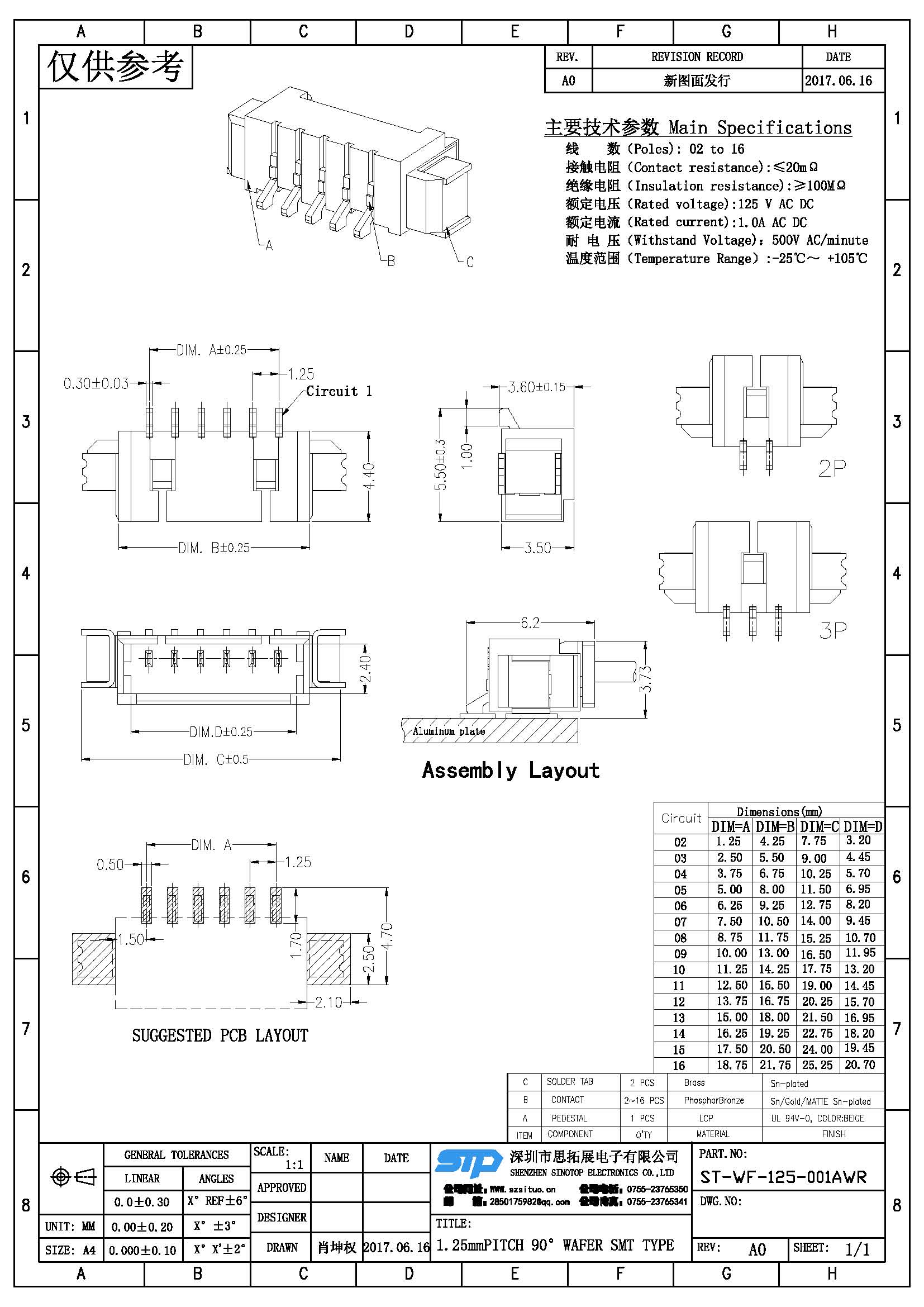 Spec:1.25mm PITCH 90° WAFER SMT TYPE