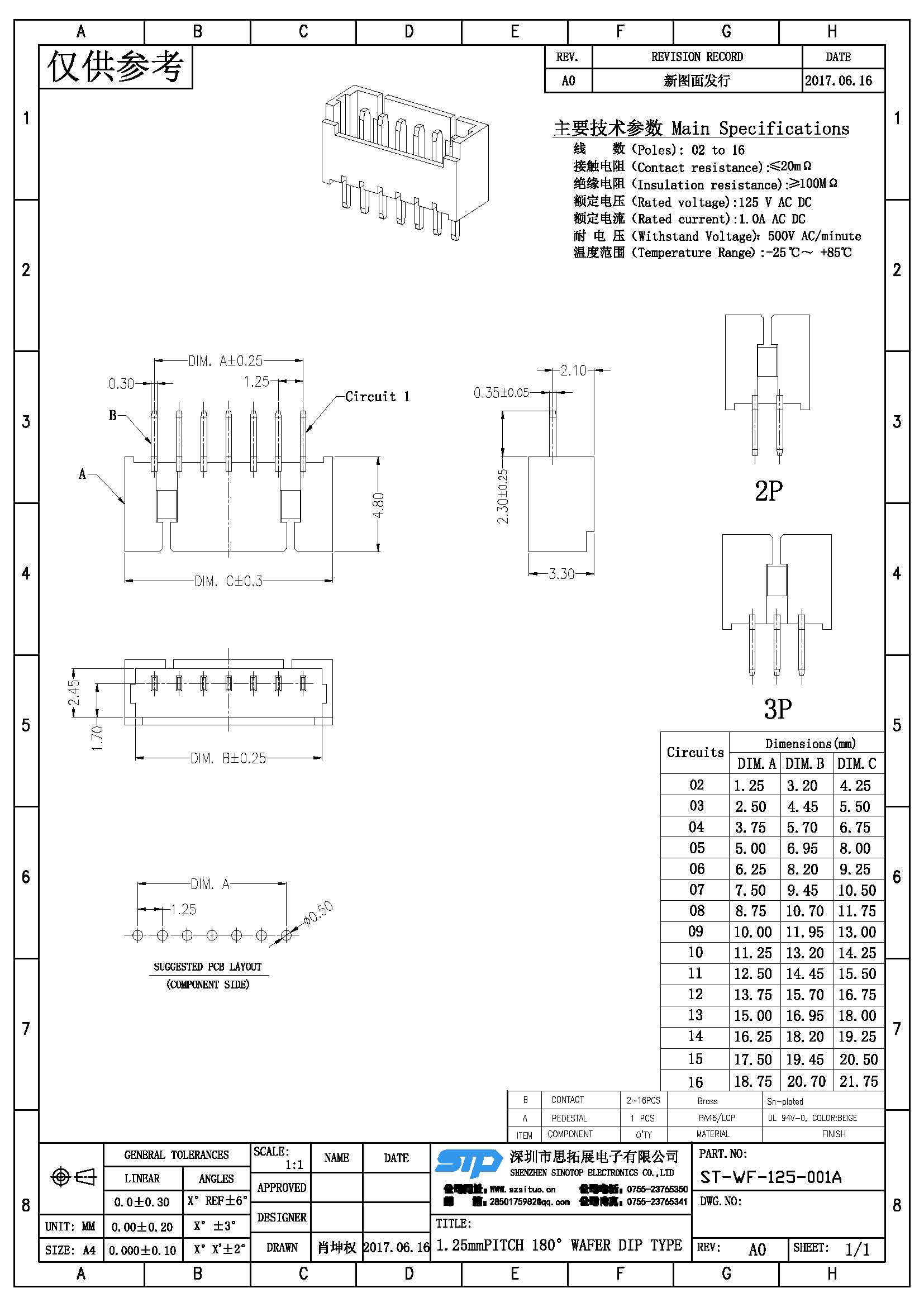 Spec:1.25mm PITCH 180° WAFER DIP TYPE