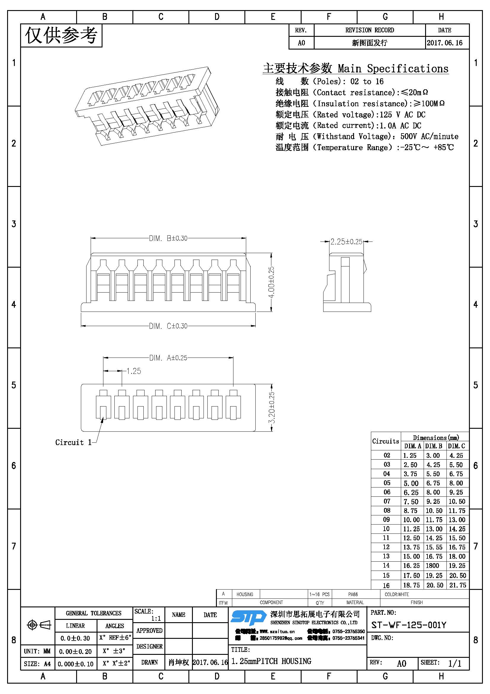 Spec:1.25mm PITCH HOUSING
