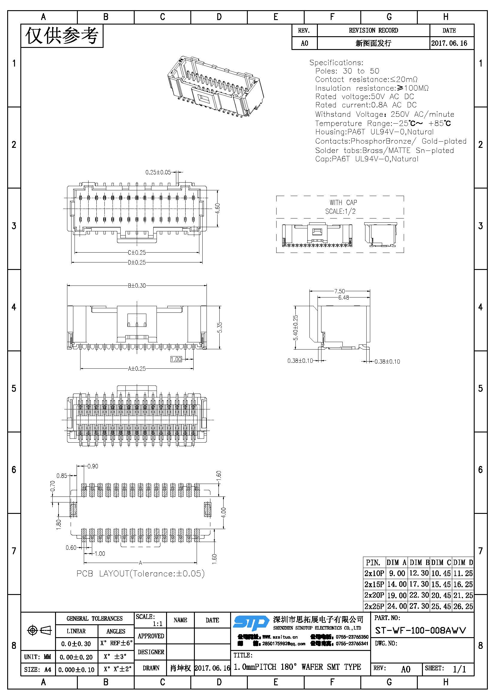 Spec:1.0mm PITCH 180° WAFER SMT TYPE