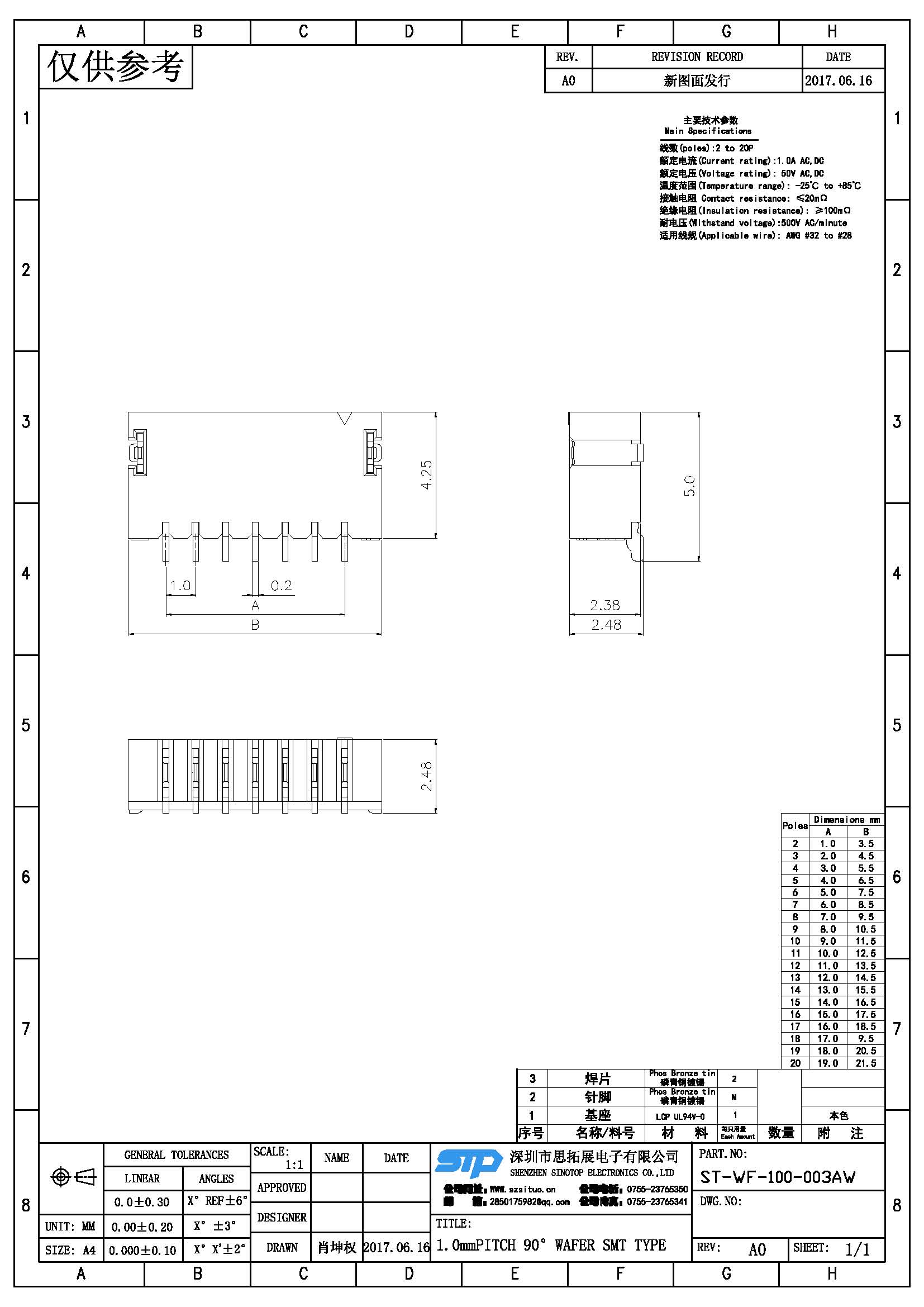 Spec:1.0mm PITCH 90° WAFER SMT TYPE